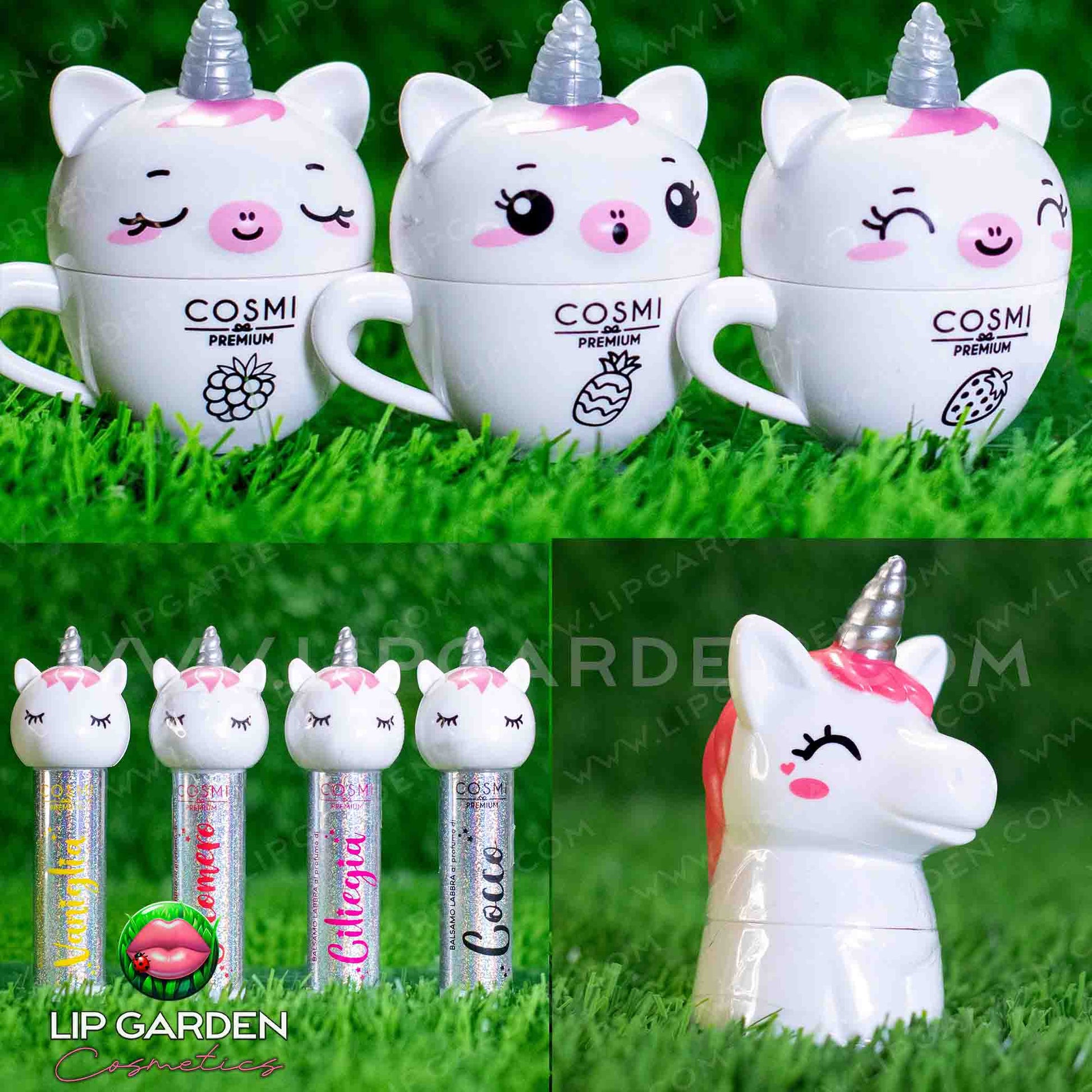 7. Unicornio taza - formato bálsamo bolita. Aromas: fresa, piña, frambuesa.